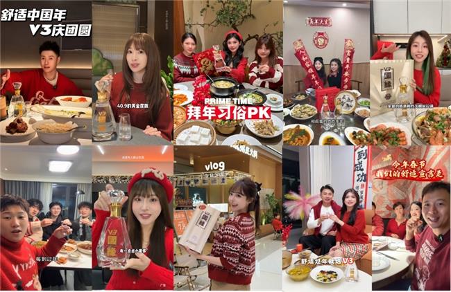 情感共鸣的精准落地,是国缘V3此次营销的第一个核心亮点,也是其打破“酒桌营销”刻板印象的关键一步。不同于多数品牌春节TVC的温情套路,国缘V3推出的《春节舒适指南》TVC,选择直面当代人春节的社交痛点——催婚、问薪、过度劝酒,用真实场景引发用户共情,最终落脚于“喝酒回归轻松本质”的品牌主张。这种不回避痛点、不刻意煽情的表达,让“舒适过年”不再是空洞的祝福,而是可感知的生活愿景。更具价值的是,TVC并非孤立的内容传播,而是与抖音#舒适中国年 V3庆团圆#、#舒适新年,我的宣言#话题挑战形成联动,让品牌主张从“单向传递”变成“双向互动”。用户自发创作的UGC内容,不仅丰富了“舒适团圆”的场景表达,更让国缘V3的品牌理念渗透到年轻群体中,实现了“情感破圈”——这背后,是国缘V3对当代春节社交情绪的深刻洞察,更是对白酒品牌“去功利化”情感沟通的成功探索。