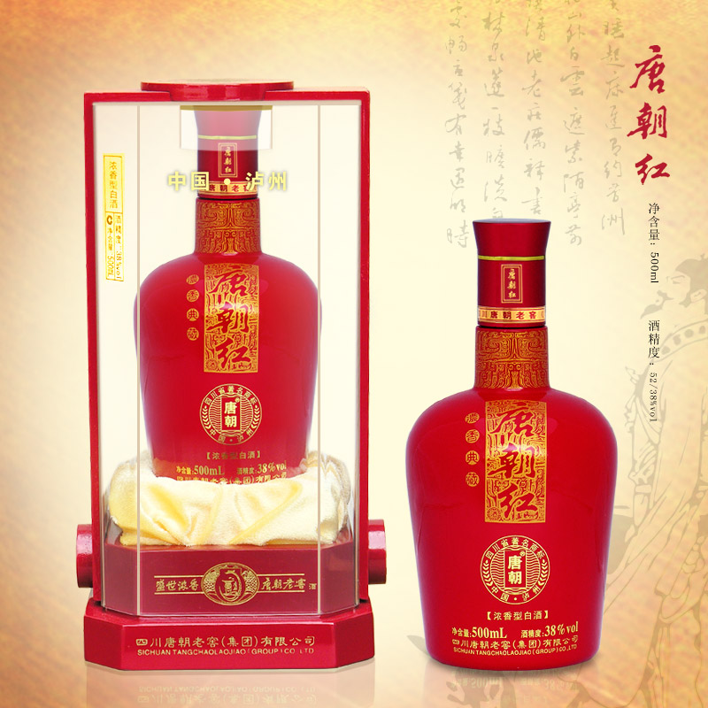 唐朝,一个中国封建社会政治、经济和文化发展的鼎盛时期。起源于秦汉的泸州酒业,在这个时期有了长足的发展。伴随着五代以来泸州以南地区民族大融合带来的文化碰撞,传统酿酒技术快速发展,泸州的酿酒业兴盛不衰,“泸酒甲天下”的美誉传四方。 坚实积累 四川唐朝老窖(集团)有限公司坐落于中国白酒金三角地带的中心——酒城泸州,是一个以酒类生产、销售为主体的跨行业集团公司。公司由的“桂花酿酒坊”、的“江阳区酒厂”,到改制成立集团公司一路发展至今,已具有占地400余亩、原酒生产窖池1000余口的规模,其中上百年窖池500余口,拥有自动生产灌装流水线10条,年产瓶装酒20000余吨,现有员工1000余人。公司曾先后荣获“四川省百强企业”、“四川省小巨人企业”、“四川省商标”、“中国明星企业”、“中国质量管理体系认证”、“全国基础管理一级企业”、 “重合同、守信用”单位等荣誉。公司主打品牌“唐朝”老窖在全国销售业绩突飞猛进,已有17个销售分公司或办事处。 传世佳酿 唐朝老窖继承了泸型美酒的基因,因纯正的血统而,在当今盛世,以其浓厚的文化底蕴和纯粹精湛的工艺再一次诠释了稀世美酒的定义。唐朝老窖不但拥有古老而连续使用至今的酿酒窖池群,以糯红高粱为根,秉承师徒口传身授、代代相承的“传统古法酿制技艺”为基,加之天然洞藏的基酒,酿酒大师的全程参与合作,成就了唐朝老窖的尊贵、典雅,抒写着白酒行业的之作。 盛世浓香 唐朝老窖遵循古法酿造,并结合现代科技在实践中不断总结创造,采用多粮型生产工艺,酒体以优雅、柔和、醇甜、爽净为调味理念,既具有浓香型大曲酒的窖香浓郁、绵甜甘冽、尾净爽口的特点,又具酱香型酒的幽雅、细腻、醇厚的特征。饮后不口干、不上头、醒酒快。 高端定位 唐朝老窖凝聚了大唐盛世繁荣的文化精华,每一款外型都彰显着唐朝的富贵与华丽、雍容与典雅,从饮用口感到饮用定位,都与当今时代趋势与精英人士品位配合,宴俊杰、敬才俊、祝卓者、成为当之无愧的“中国经典宴请用酒”。唐朝老窖,为每一个创造奇迹的中国人举杯,也为每一个正在酝酿奇迹的雄心加油!