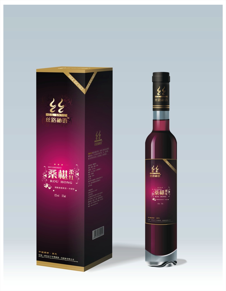 “丝路秘语”系列桑葚果酒精选天赋桑郡-南充的优质桑椹,用天然的嘉陵江畔的泉水,利用具有自主知识产权的优质酵母,通过先进的设备和工艺发酵酿制而成。该系列果酒含丰富的氨基酸、白藜芦醇、铁、维生素等营养成分。 桑椹利口酒:酒体厚重醇美、雄浑有力、回味悠长。