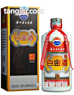 酱香突出 回味悠长:53°茅台白金酒金如意酱香突出,优雅细腻,以贵州仁怀市本地优质高粱、小麦、水为原料,采用科学独特的传统工艺精心酿制而成,未添加任何香味物质。具有酒体醇厚、回味悠长、空杯留香持久的特点。 茅台酒是世界三大蒸溜酒之一,誉称国酒,在国内外享有盛名.产于中国贵州茅台镇,以本地优质糯高梁、小麦、水为原料,利用得天独厚的自然环境,采用科学独特的传统工艺精心酿制而成,末添加任何香气、香味物质,从 生产、贮存到同同出厂历经五年以上。 茅台酒具有酱香突出、幽雅细腻、酒体醇厚、回味悠长、空怀留香持久的特点.茅台酒是风格的酱香型大曲酒之典型,故“酱香型”又称“茅香型”。其酒质晶亮透明,微有黄色,酱香突出,令人陶醉,敞杯不饮,香气扑鼻,开怀畅饮,满口生香,饮后空杯,留香更大,持久不散。口味幽雅细腻,酒体丰满醇厚,回味悠长,茅香不绝。茅台酒液纯净透明、醇馥幽郁的特点,是由酱香、窖底香、醇甜三大特殊风味融合而成,现已知香气组成成分多达 300余种。 州茅台酒厂(集团)保健酒业有限公司,隶属于中国贵州茅台酒厂有限责任公司,公司座落于风光旖旎的赤水河畔的茅台镇,生产、办公场地就在茅台酒厂厂区内。与国酒茅台同享得天独厚的水源、气候、土壤等自然条件。优越的自然环境,为公司的发展创造了有利的条件。在茅台酒厂有限责任公司的支持与地方党政的关怀下,经过近 20年的发展,已成为集保健酒、白酒生产于一体的专业酿酒公司。现有员工700余人,年产酒2500T以上,年销售额近亿元;企业2002年通过ISO9001:2000版质量体系认证,产品多次荣获国际国内奖。 白金酒于2009年一问世就获得了诸多好评,先后荣获“中国酒业十大潜力新品”、“中国酒业创新竞争力品牌”、“中国酒业全国化新高端品牌”、“全国质量检验稳定合格产品”等多项荣誉,并被选为中国2010上海特许商品。中国连锁金麒麟奖之2011具竞争力品牌。 中国连锁金麒麟奖之2011创新力人物; 中国连锁金麒麟奖之2011具竞争力品牌; 中国连锁金麒麟奖之2011创新力人物; 2011年南方都市报食品创新传媒大奖——营销创新奖; 2011年11月,金樽奖—中国酒业2011全国化新高端品牌大奖; 2011年11月,中国质量检验协会评为“全国质量检验稳定合格产品; 2011年8月,中国轻工业联合会授予2011中国轻工业精品展金奖; 2010年白金酒被选为中国上海特许商品; 中国经济脊梁——百家明星企业; 中国经济脊梁——百名企业家; 中国保健酒行业具影响力品牌; 中国保健酒行业品牌建设年度人物; 第二届中国酒业营销金爵奖之中国酒业潜力新品; 中国酒业创新竞争力品牌; 受商旅精英欢迎的保健酒品牌; 中国保健酒行业消费者喜爱品牌