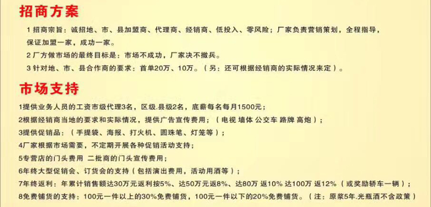 糖酒网是专业提供酒类食品饮料招商 本站只起到信息平台作用,不为交易经过负任何责任,请双方谨慎交易,以确保您的权益 客服热线:400-650-1979