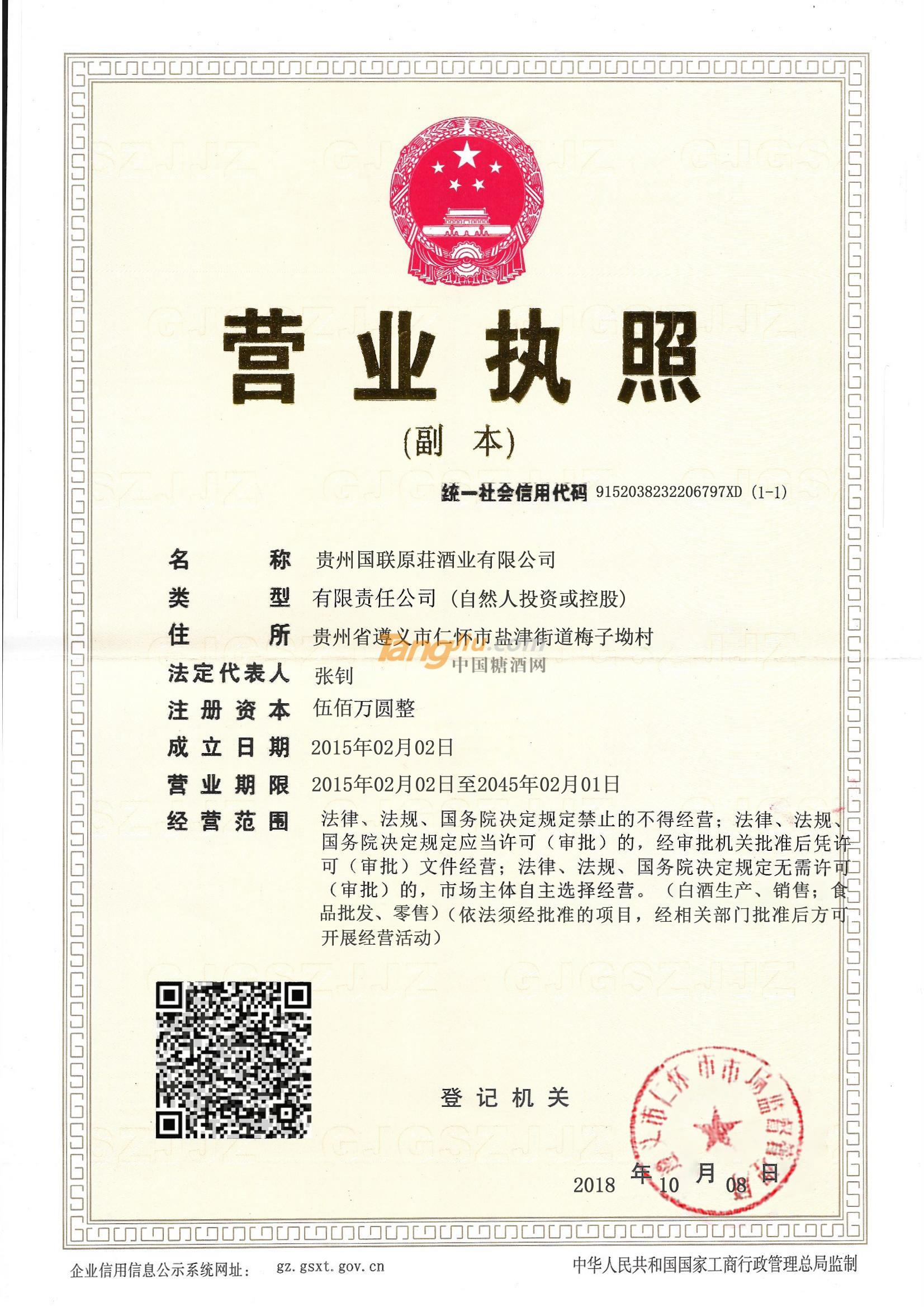 • 公司名称:贵州国联原荘酒业有限公司