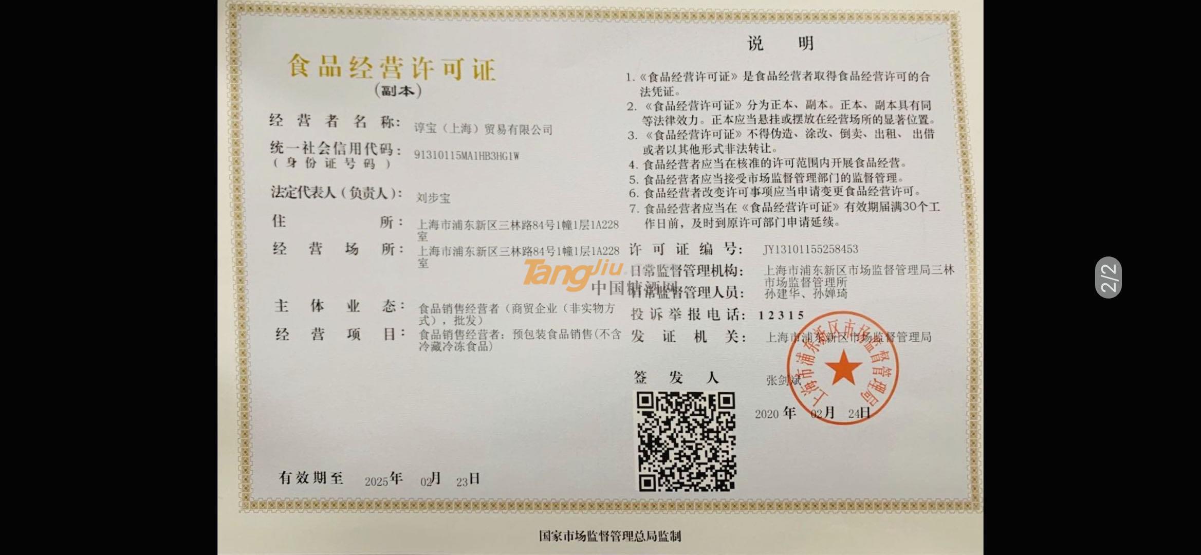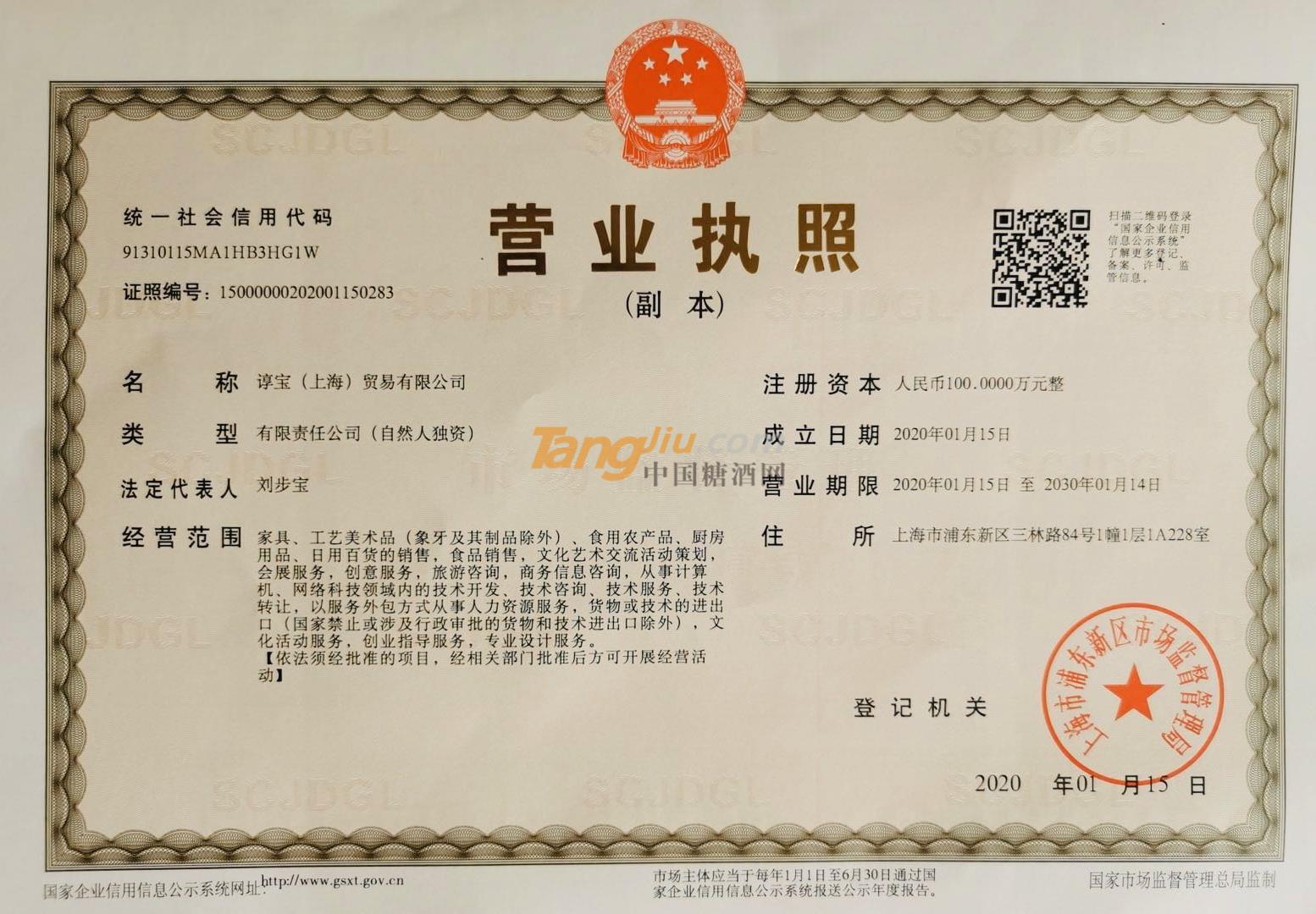 当前位置:糖酒网首页 » 白酒招商 » 谆宝(上海)贸易有限公司 » 诚信认证